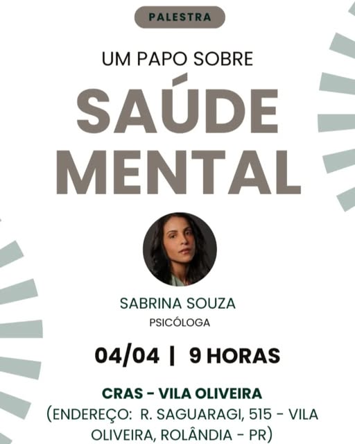 UM PAPO SOBRE SAÚDE MENTAL Com prazer, a secretaria de Assistência Social e a Cáritas Arquidiocesana de Londrina convidam para participar de uma palestra especial sobre saúde mental, que ocorrerá em Rolâ...