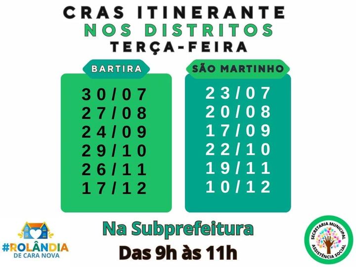 A secretaria de Assistência Social informa que os usuários dos serviços dos Centros de Referência da Assistência Social (CRAS) da Vila Oliveira, Nobre e San Fernando vão ter um atendimento diferenciado nesta s...