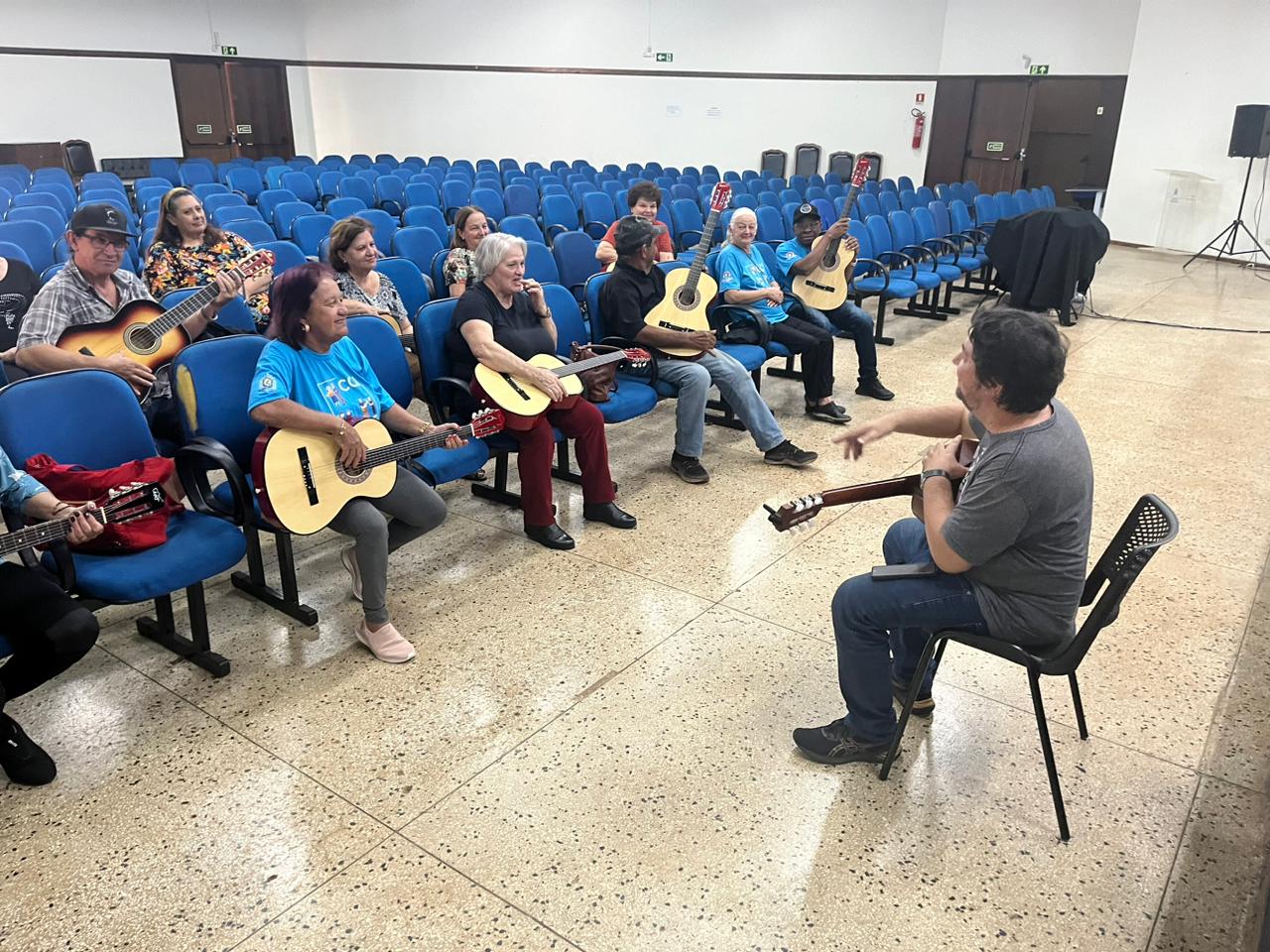 Com muita dedicação, idosos que participam do CCI de Rolândia estão transformando acordes em melodias e aprendendo a tocar violão. As aulas acontecem no Centro Cultura Nanuk e tem como professor o músico Cleve...