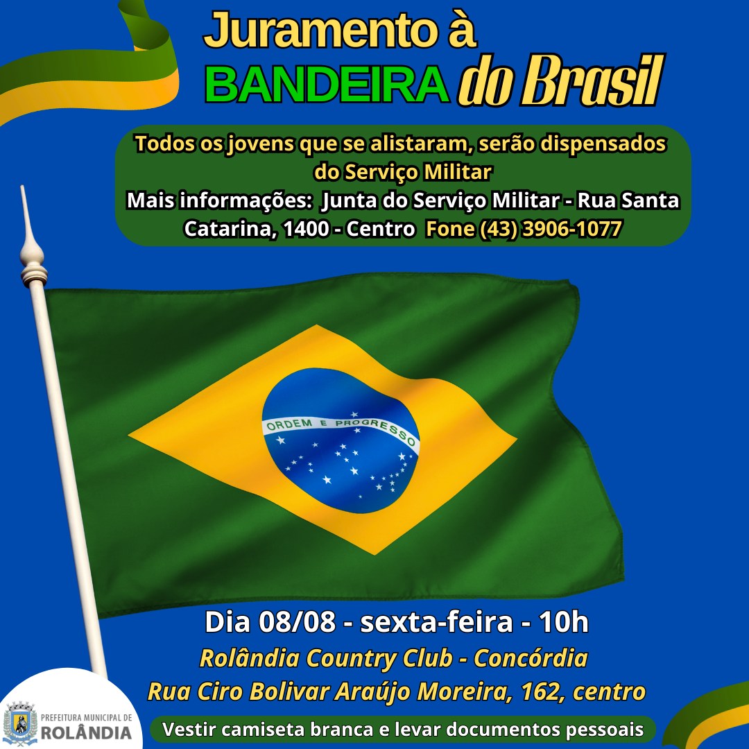 JOVENS ALISTADOS EM ROLÂNDIA VÃO SER DISPENSADOS DO SERVIÇO MILITAR, MEDIANTE JURAMENTO À BANDEIRA   A Junta do Serviço Militar (JSM) de Rolândia comunica que os cerca de 400 jovens nascidos em 2007 e ...