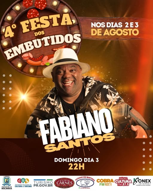 4º Festa dos Embutidos, em São Martinho, vai ter Fabiano Santos & Banda   A secretaria de Cultura e Turismo informa que nos dias 2 e 3 de agosto (sábado e domingo), o distrito de São Martinho vai sediar a &l...