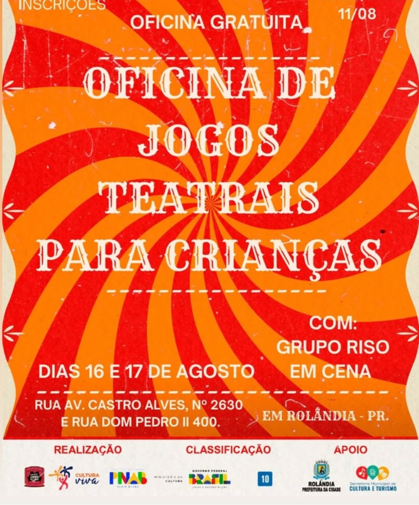 OFICINA DE TEATRO GRATUITA PARA CRIANÇAS EM ROLÂNDIA!