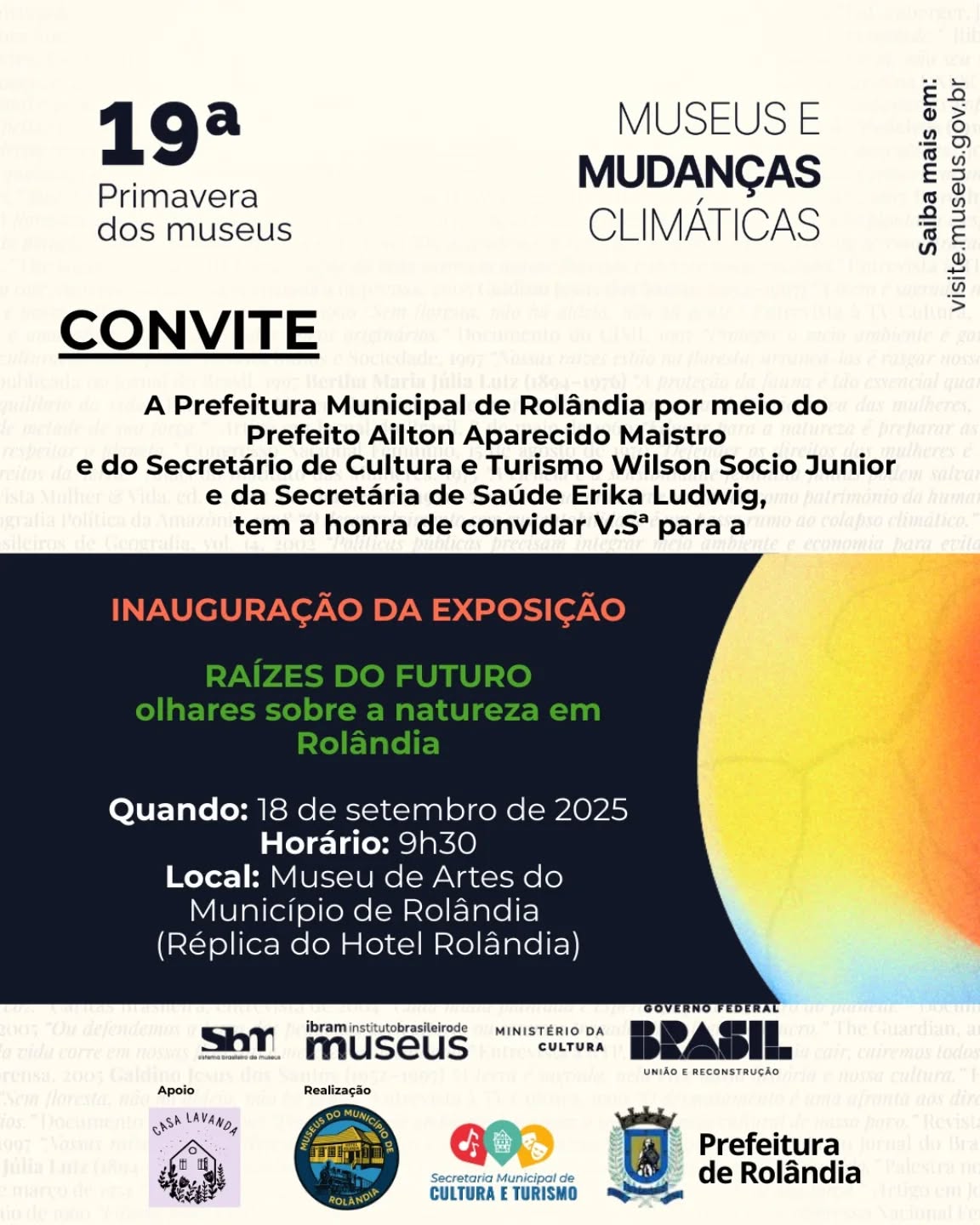 Exposição: Raízes do Futuro   A secretaria de Cultura e Turismo convida para a abertura da exposição Raízes do Futuro – Olhares sobre a natureza em Rolândia, que integra a programaç...