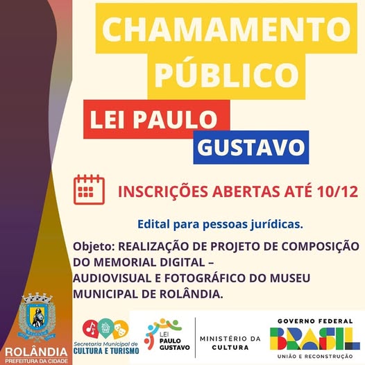 EDITAL DE CHAMAMENTO PÚBLICO 01/2025 - REDE MUNICIPAL DE PONTOS DE CULTURA DE ROLÂNDIA/PR 13/03/2025 Ver