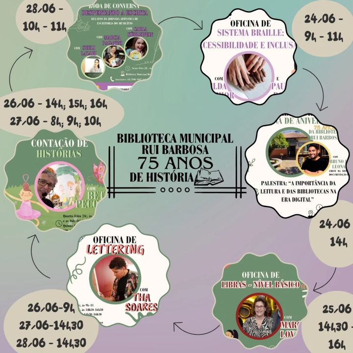 Aniversário de 75 anos da Biblioteca Municipal Rui Barbosa   A Secretaria Municipal de Cultura e Turismo tem o prazer de convidá-lo(a) para a cerimônia de abertura da semana comemorativa do 75º aniversário...